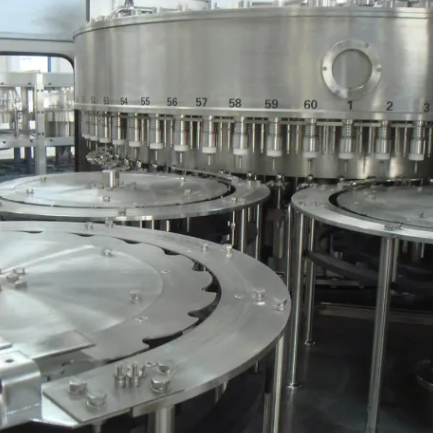 After-wash the empty bottle input the filling machine through the conveyor system, two push-barrel cylinders operate beside the conveyor, then the bottle arrives filling part, the bottle bottom separates the conveyor belt. After filling, the bottle drop on the conveyor belt. Output to the capping part.